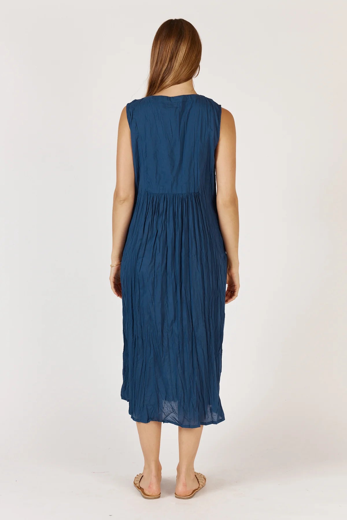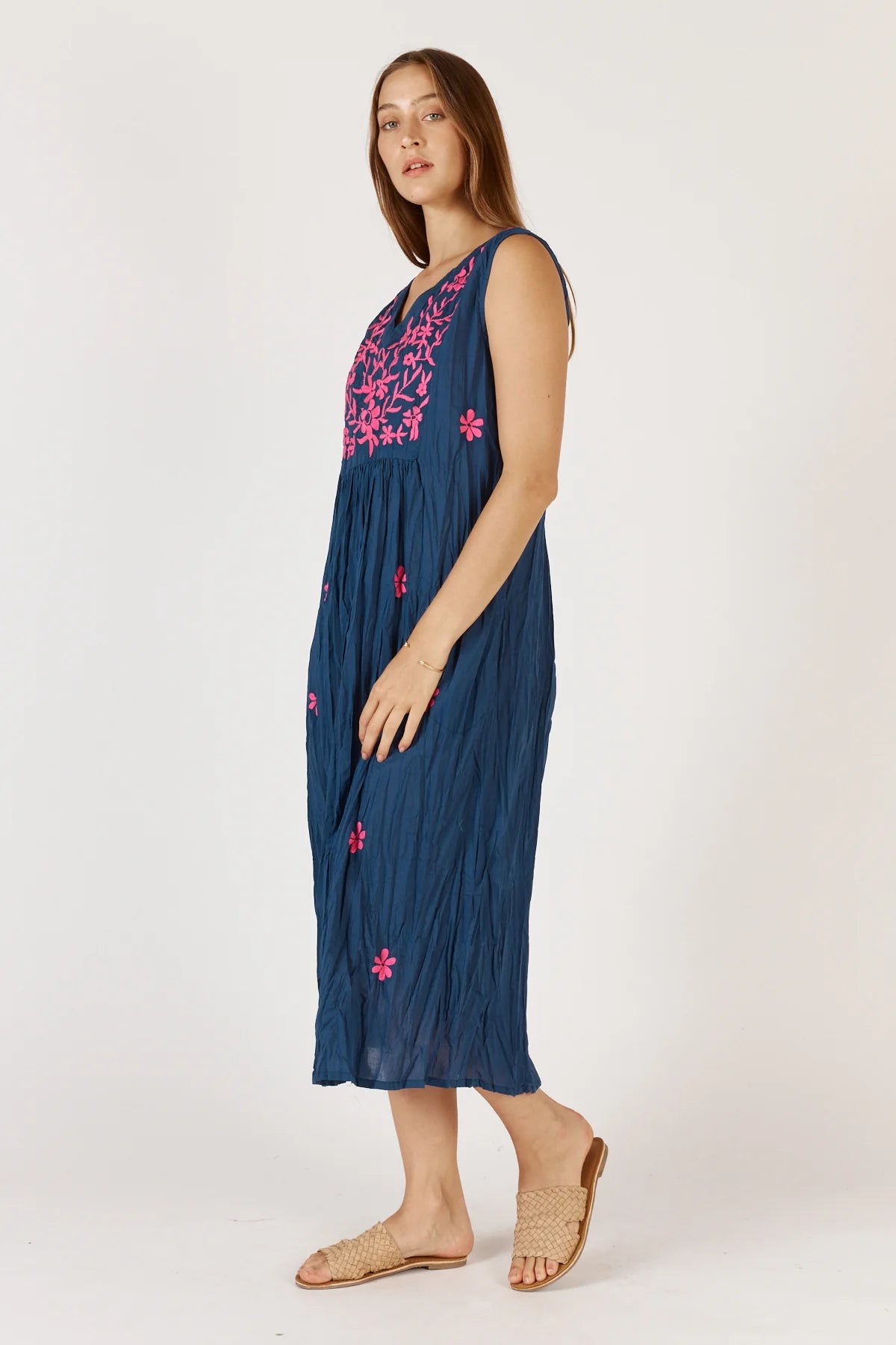 The Andaman Midi in Navy combines timeless elegance with everyday practicality. Crafted from pure cotton, this midi dress features an exquisite embroidered front detail that elevates its refined aesthetic. The flattering midi length offers versatile styling options, while functional side pockets add a touch of modern convenience. Perfect for those who appreciate quality fabrics and understated sophistication.