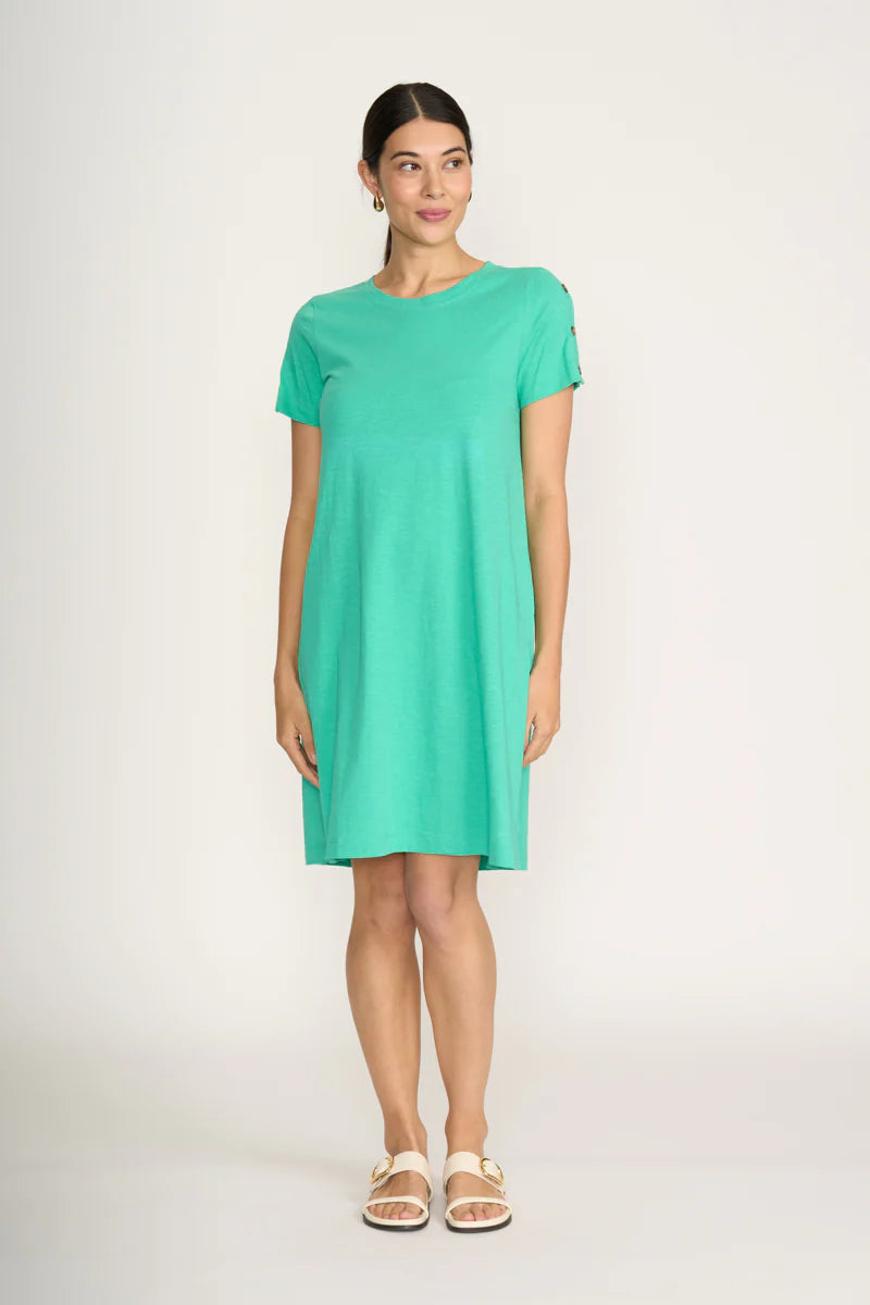 An easy throw-on style for warm, sunny days, the Worth The Hype Dress brings fresh energy to your everyday wardrobe. Crafted from soft 100% cotton slub, it’s lightweight, breathable, and designed for all-day comfort. The relaxed silhouette features a classic round neckline, short sleeves with button detail, and handy side pockets, while the playful green check print adds a vibrant touch of fun.