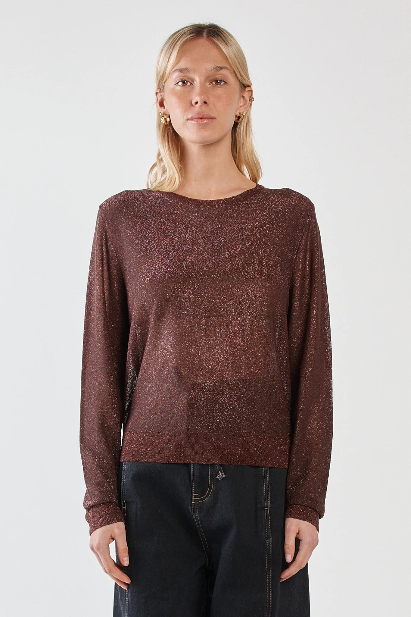 Maiken Lurex Knit Jumper By Sass - Chocolate