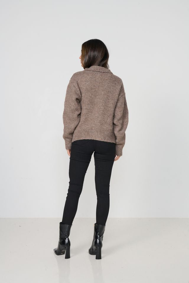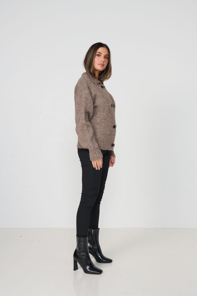 Woollahra Double Breasted Cardi By Caju - Walnut